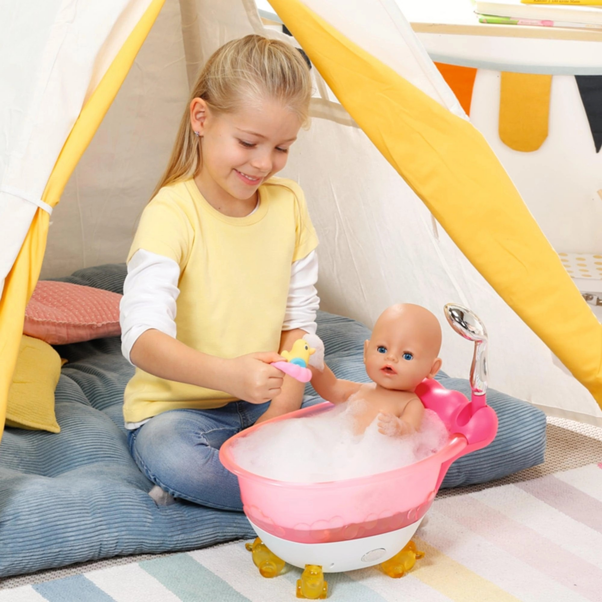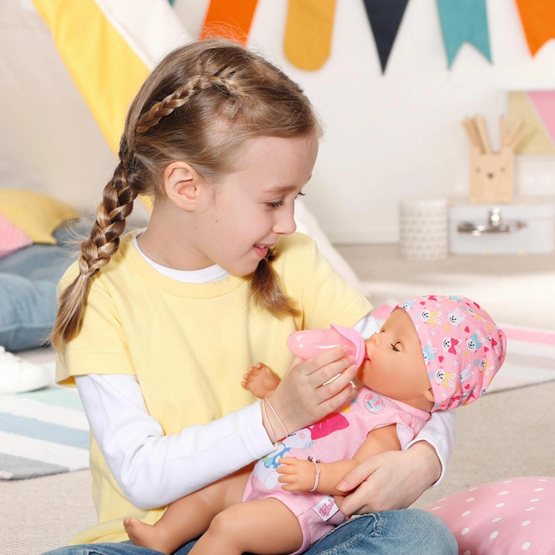 The set of basics includes 10 accessories to support her functions, a pink bodysuit and a hat. BABY born Magic With 10 lifelike functions for lots of fun.