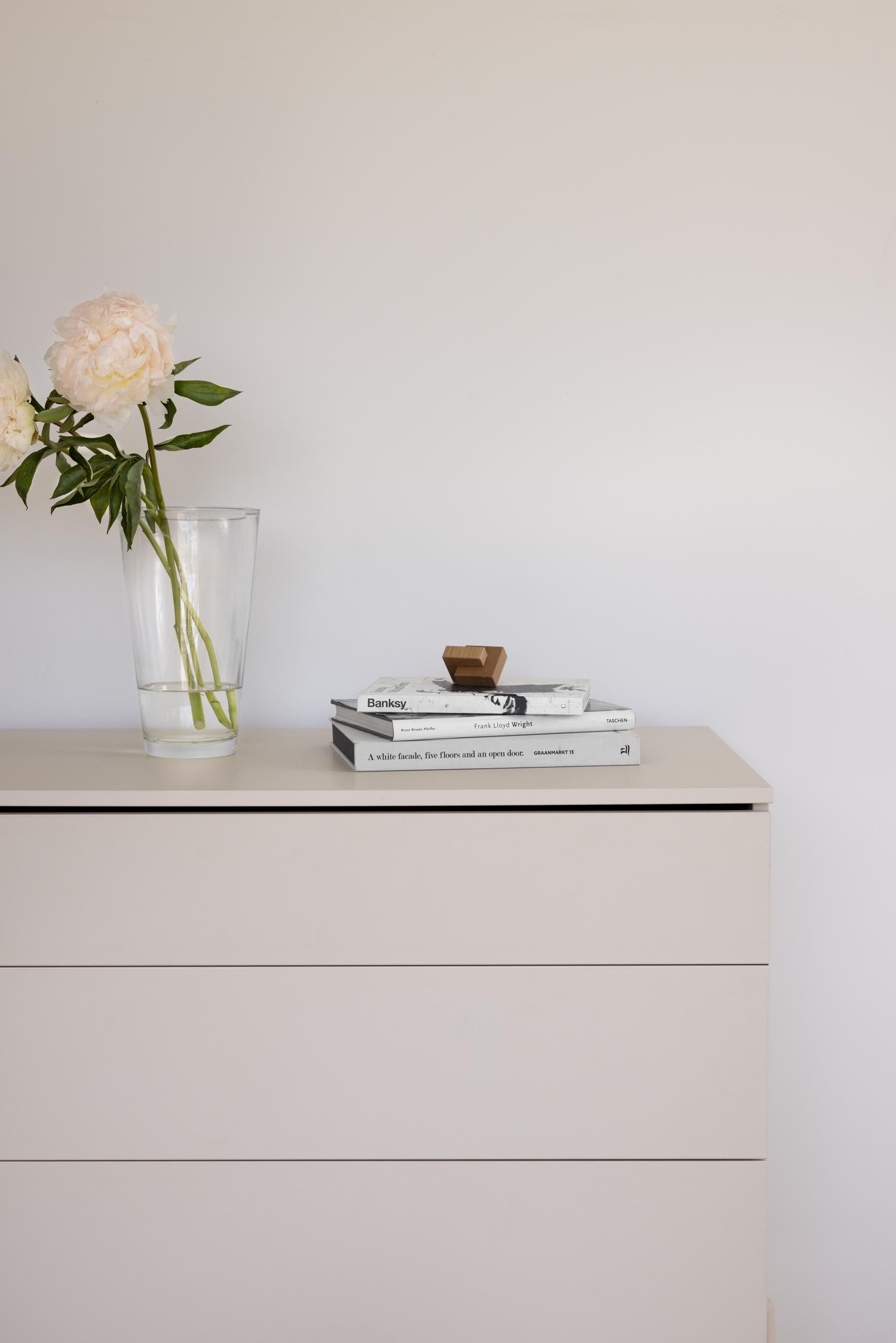 Measuring 96 cm in length, 58 cm in width, and 92 cm in height, the Ashi Chest provides ample space for all your baby essentials. The three handle-less drawers open effortlessly with a gentle push thanks to the push-to-open system, ensuring easy and quiet access while maintaining its sleek design.