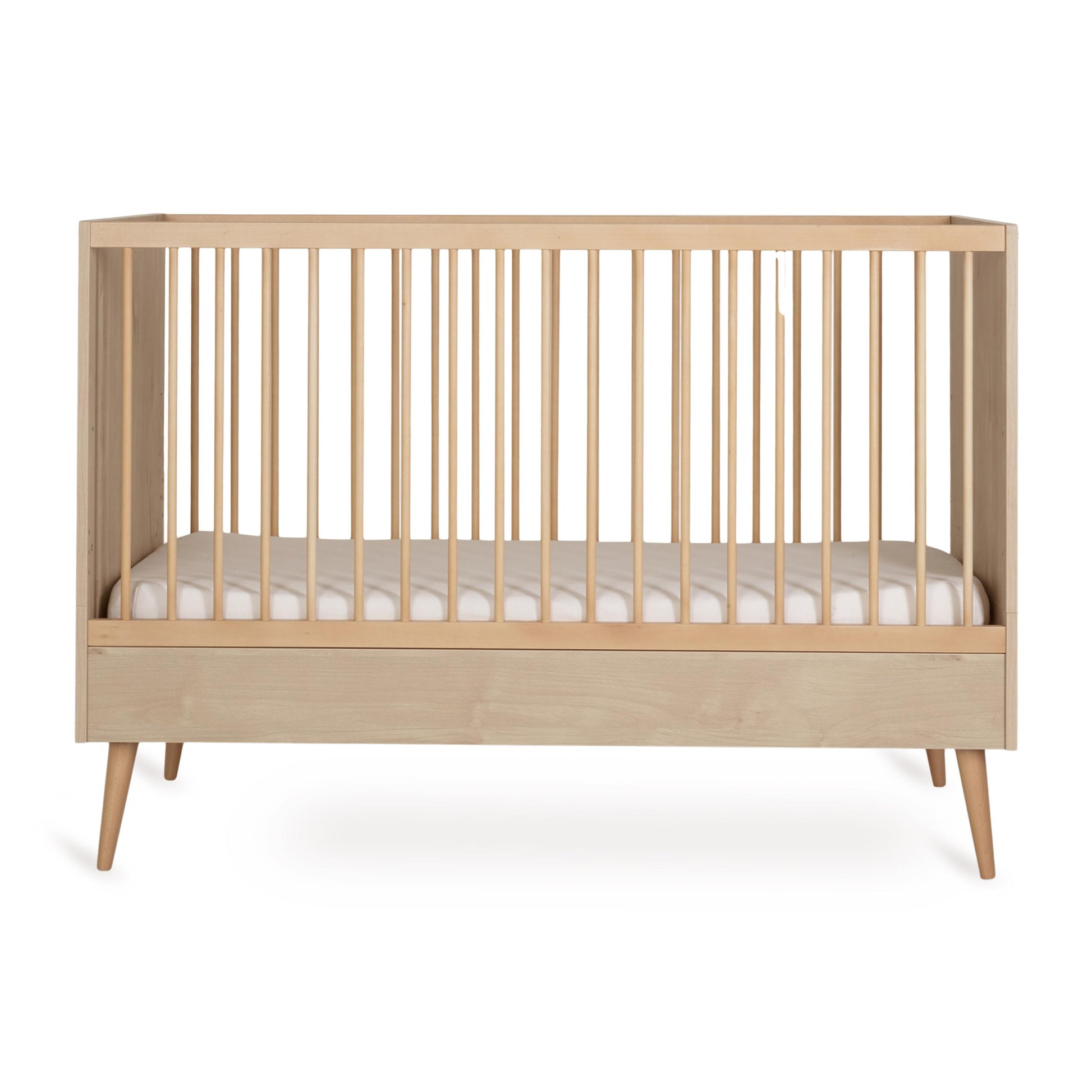 The beautiful Quax Cocoon Convertible Cot Bed 140 x 70cm, is versatile and grows with your little one. The baby cot bed has an adjustable base at three heights (32 cm, 52 cm, and 71 cm) to accommodate your child's needs. Over time, this cot bed can easily be transformed into an open toddler bed of 140 x 70 cm, extending its lifespan. The bed exudes timeless elegance and complies with EN 716:2017 safety standards.