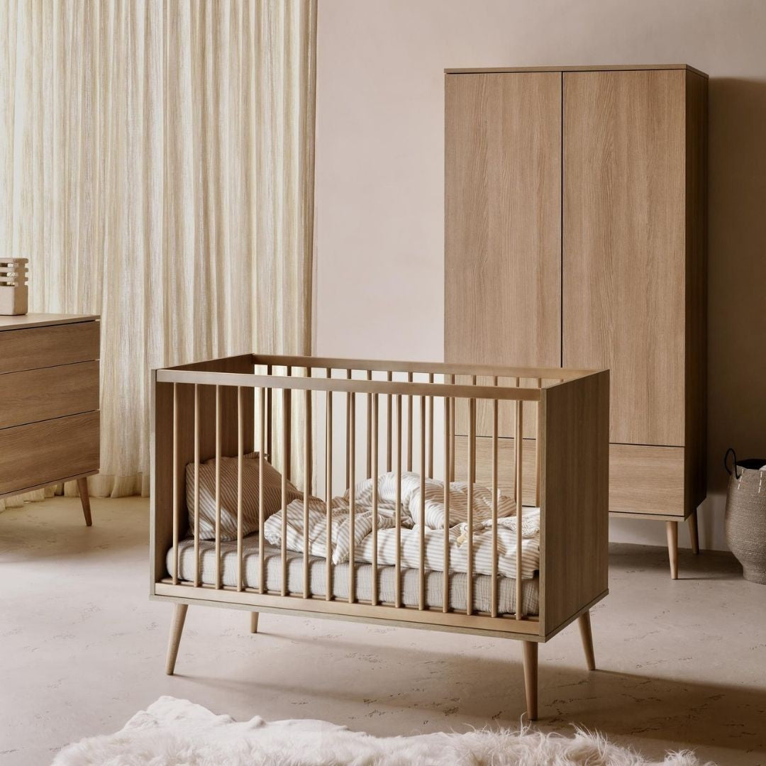 With it's minimalist design the Quax Flow cot 120x60cm in honey ash is the perfect choice for a serene and stylish nursery.