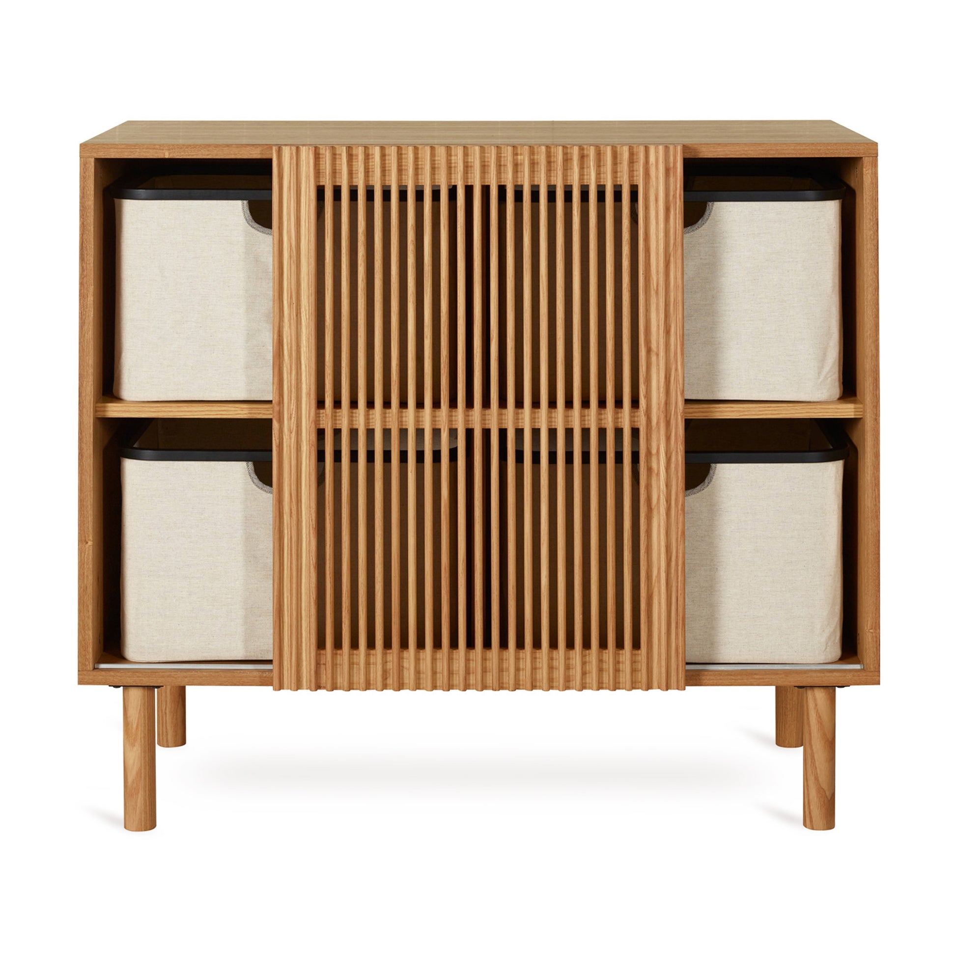 The Hai No Ki Chest exudes timeless elegance with its ash-veneered MDF panels and solid ash wood legs and sliding door. This stylish piece adds a refined touch to any nursery while remaining practical and functional.