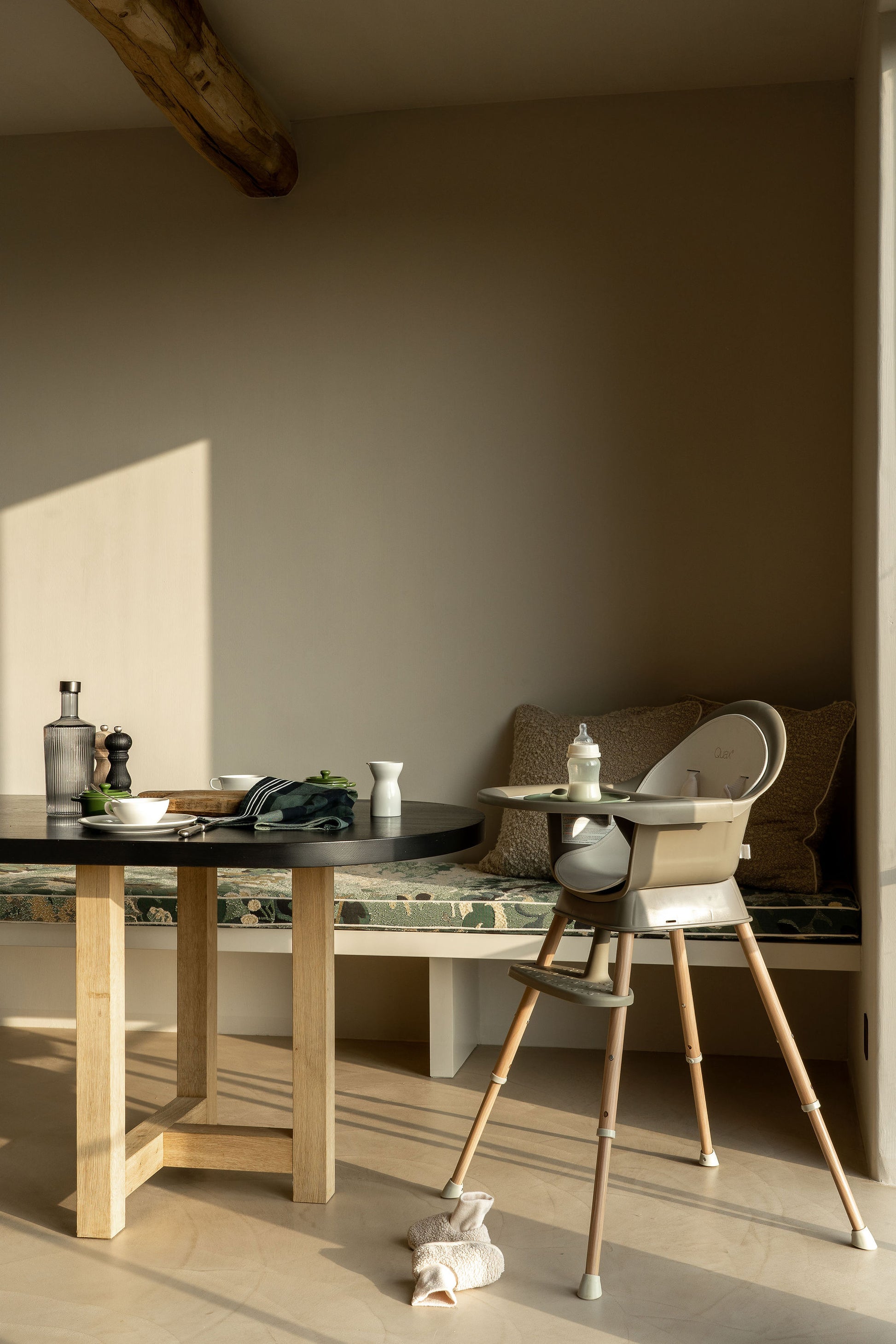 Our High Chair Ultimo 3 Luxe adds an extra touch of style with its wood-look legs, while still complying with the strictest safety standards (EN 14988:2017+A1:2020+EN17191/2021) and offering an optional reducer cushion for added comfort.