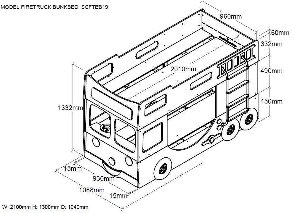 The VIPACK FIRE ENGINE bunk bed 90 x 200cm red offers a perfect blend of fun and practicality. Its durable construction and traditional aesthetic make it a standout choice for any kids bedroom, ensuring comfort and style for years to come.