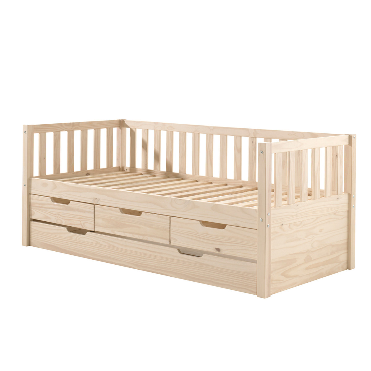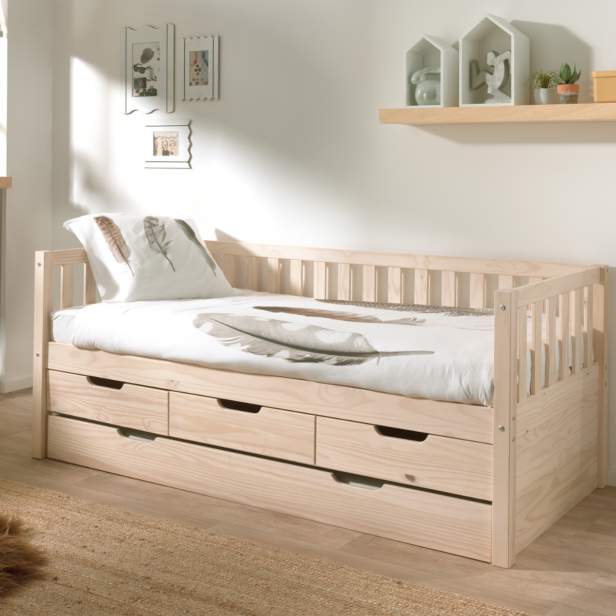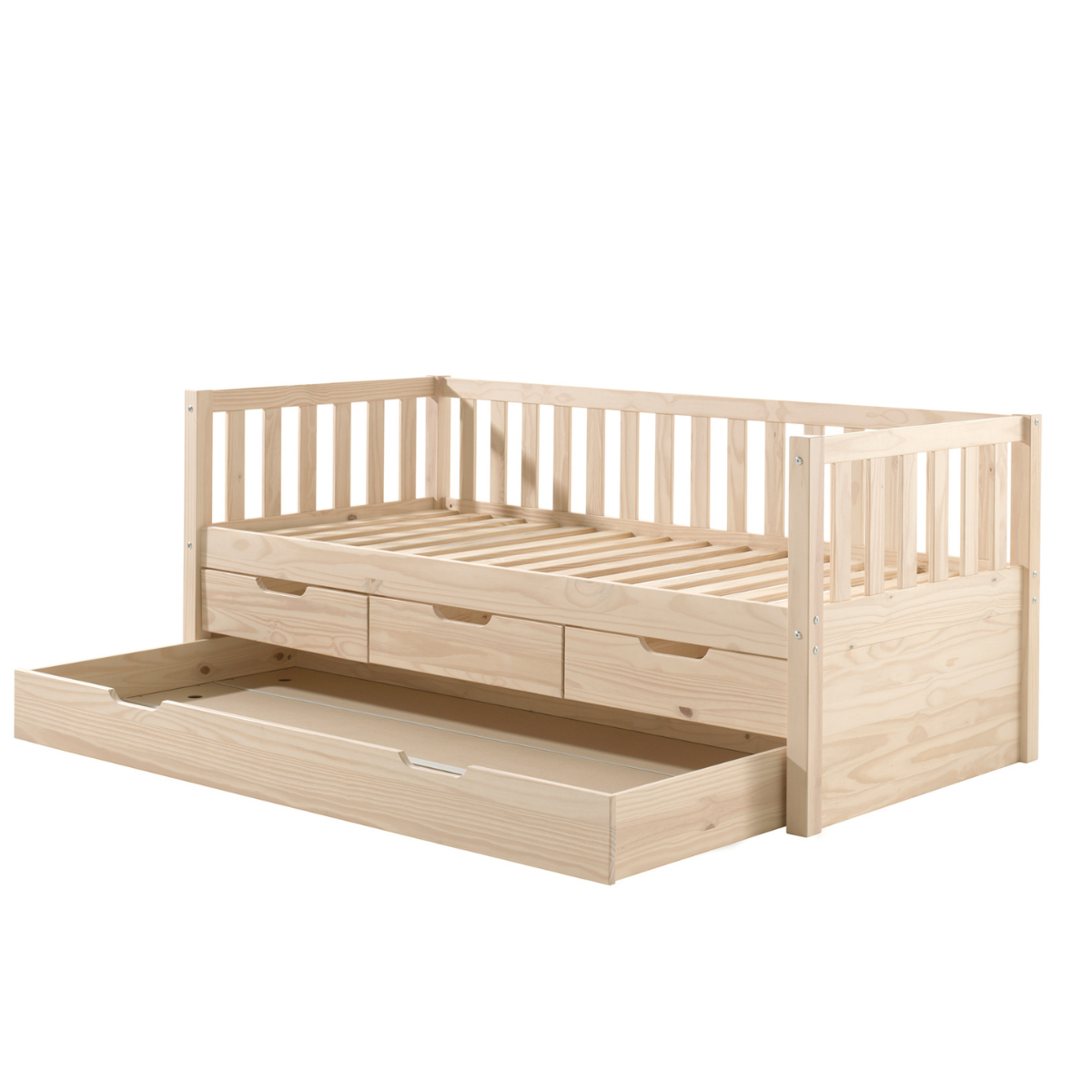 - Materials: Under bed drawers made from solid pine.