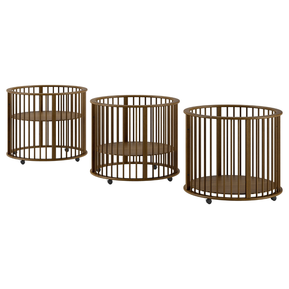 The VIPACK JAXX DINO bay & toddler round wooden playpen in walnut is the perfect solution for busy parents looking for a safe and secure space for their child to play.