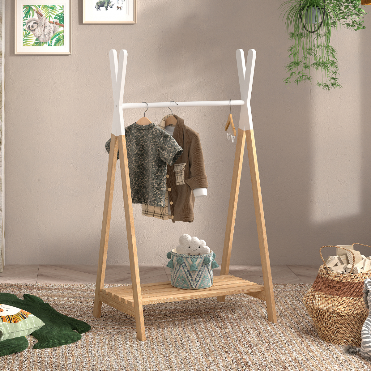 The VICPACK JAXX KIDDY Clothing Rail in white is a stylish yet practical addition to your child’s space. Perfect for encouraging organisation and keeping clothes and accessories neatly displayed, it’s a versatile piece that complements any decor.
