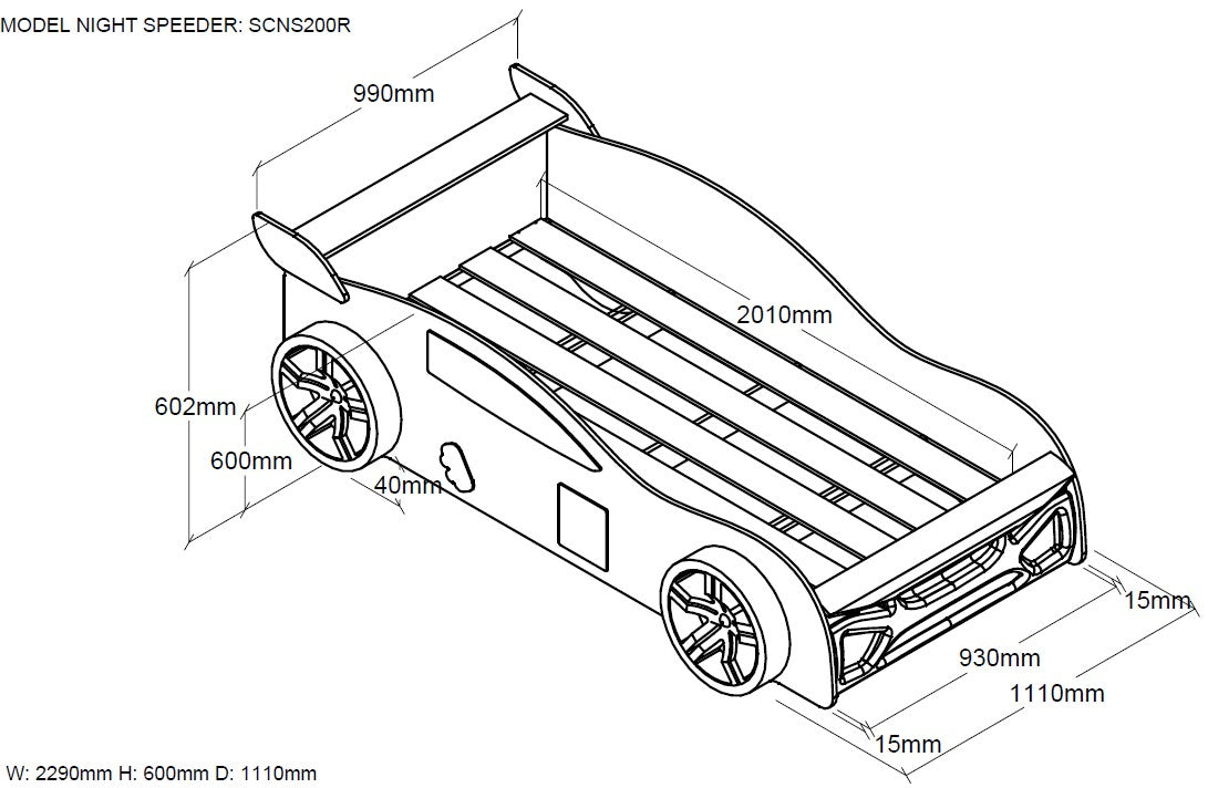 The VIPACK NIGHT SPEEDER European single racing car kids bed 90 X 200cm white offers a perfect blend of fun and practicality. Its durable construction and sleek aesthetic make it a versatile choice for any bedroom, ensuring comfort and style for years to come.