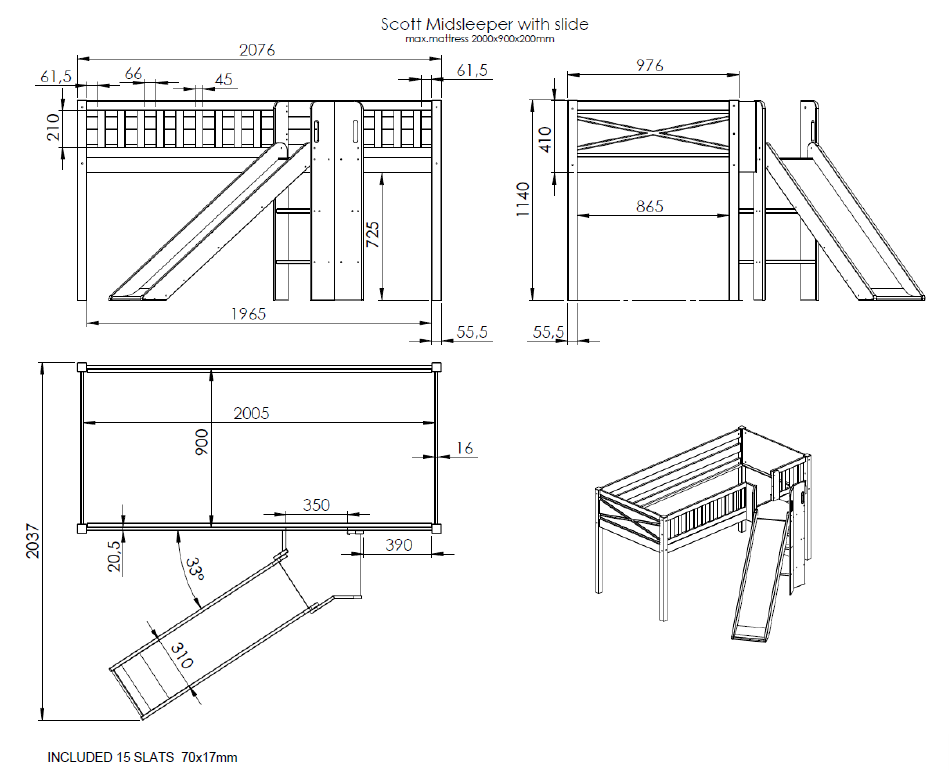 - Angled Ladder: Easy-to-climb ladder for safe and convenient access to the sleeping area.